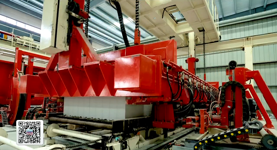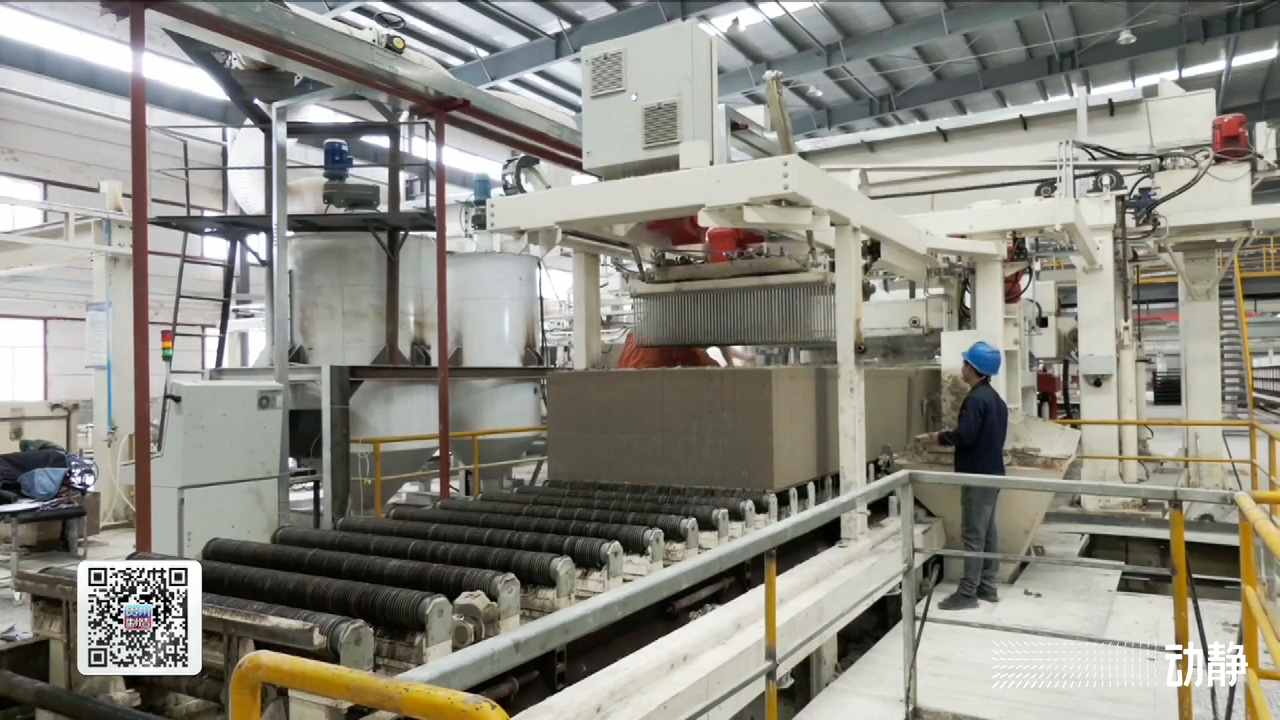 在贵州长通装配式建材有限公司的ALC板材生产线上,生产人员将石灰、水泥等原材料进行调配制备,经搅拌、浇注、养护、切割等工艺流程后,一块块ALC隔墙板顺利产出。凭借着轻薄节能、高效便捷、低价节约、防火安全等特性,该材料被选为大运会主媒体中心的墙体材料。