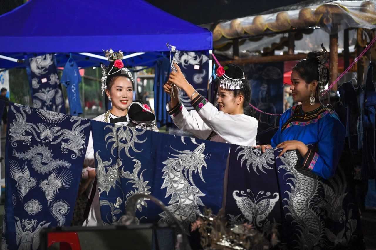 “过去,村民的手工技艺难以被外界知晓,刺绣和蜡染产品主要靠客户介绍,销路有限。”罗丽萍说,如今,村里开发了蜡染T恤、围巾等产品到“村超”现场售卖,开赛以来销售额已超20万元。