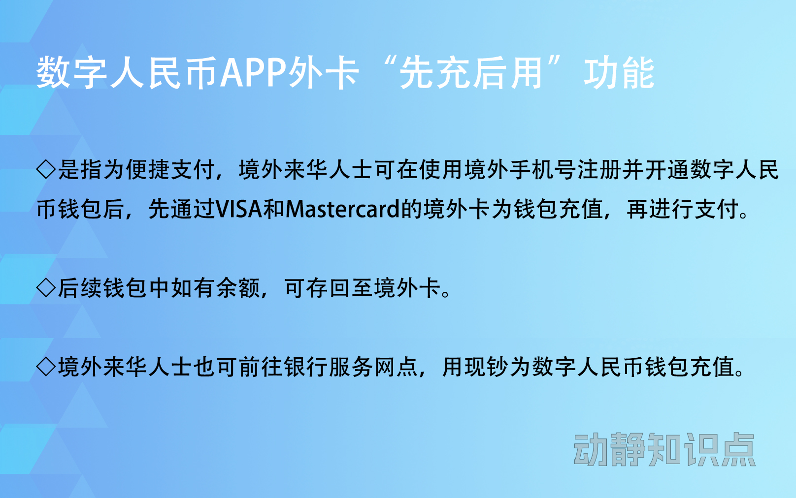 ▲数字人民币对境外来华人士的支付服务再升级。数字人民币APP近日上线外卡“先充后用”功能,更好地为境外来华人士提供安全、便捷的支付服务。详情