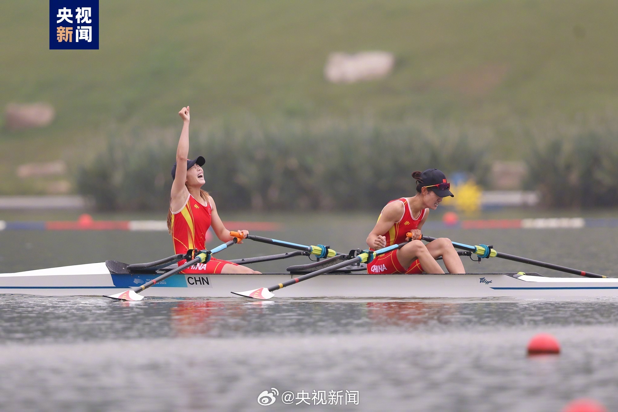 ▲24日,在杭州亚运会赛艇女子轻量级双人双桨比赛中,中国选手邹佳琪/邱秀萍夺得金牌,这是杭州第19届亚洲运动会的首枚金牌。仅首个比赛日上午,中国体育代表团就收获11枚金牌。