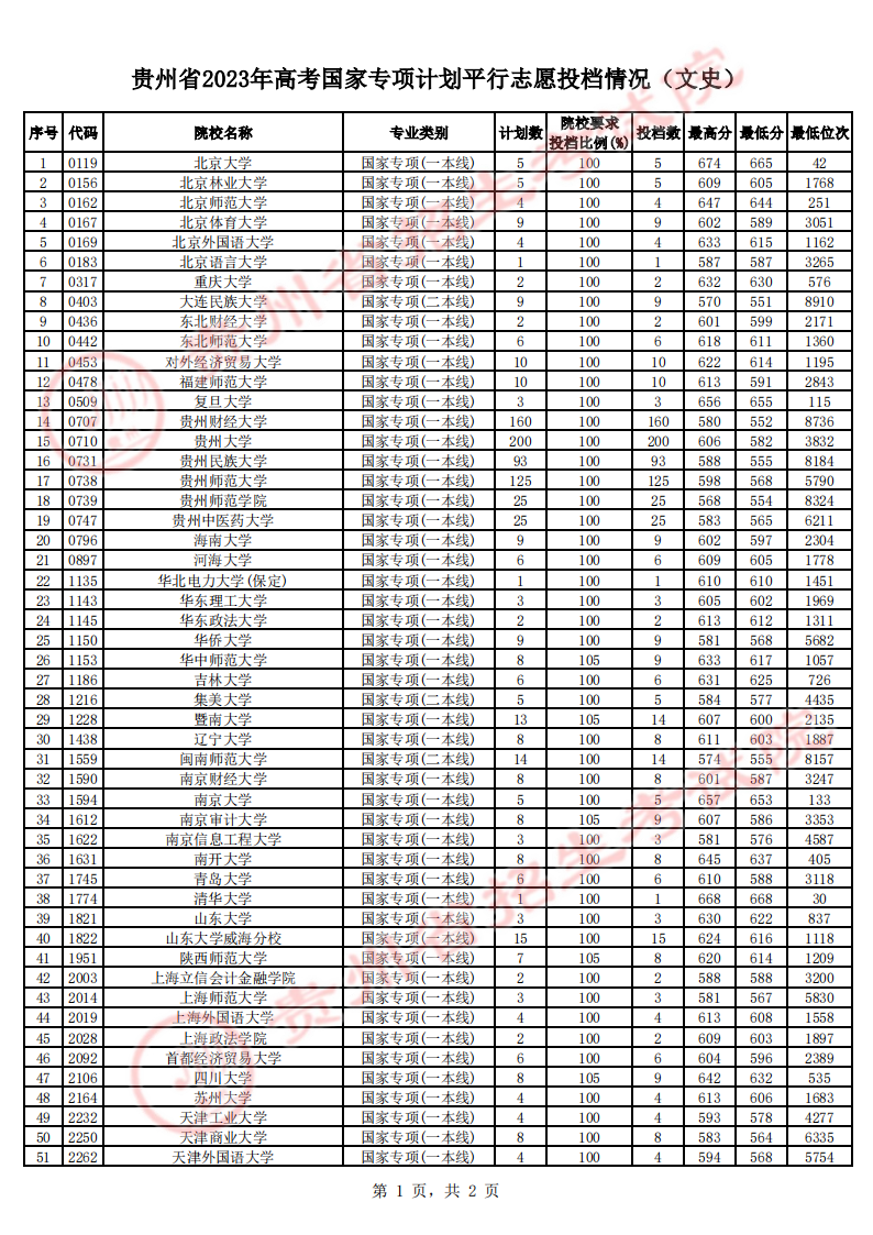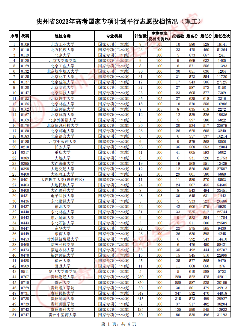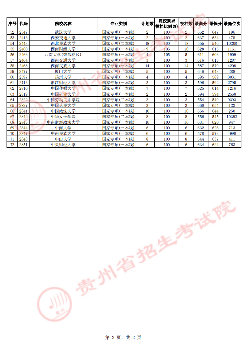 贵州省2023年高考体育类二本平行志愿征集志愿7月16日投档情况