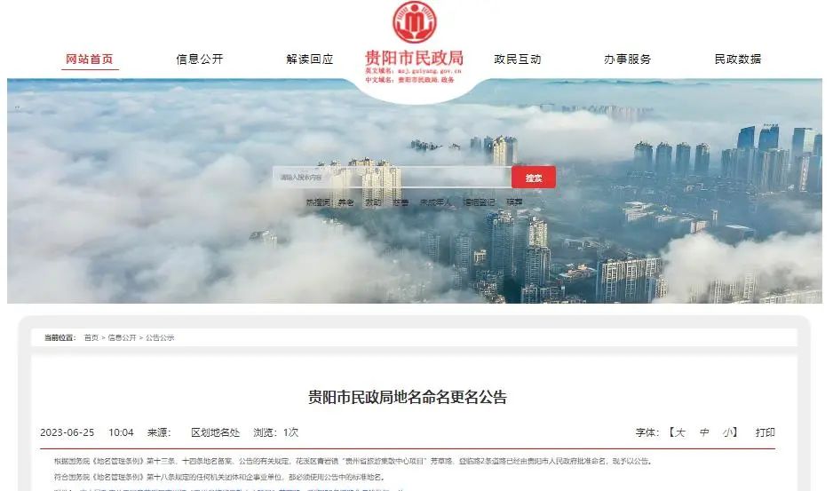 6月25日,贵阳市民政局官网发布一则“地名命名更名公告”:根据国务院《地名管理条例》第十三条、十四条地名备案、公告的有关规定,花溪区青岩镇“贵州省旅游集散中心项目”芳草路、登临路2条道路已经由贵阳市人民政府批准命名,现予以公告。