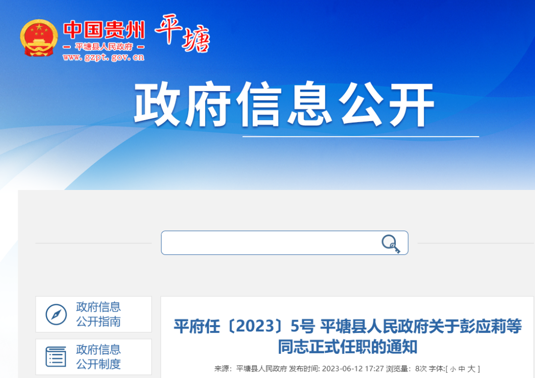 按照《中共平塘县委关于彭应莉等同志正式任职提名的通知》(平干任〔2023〕35号)要求,经县人民政府研究,决定: