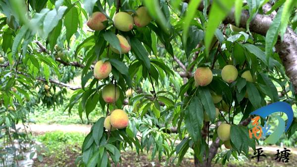 一棵棵桃树枝头挂满了诱人的桃子