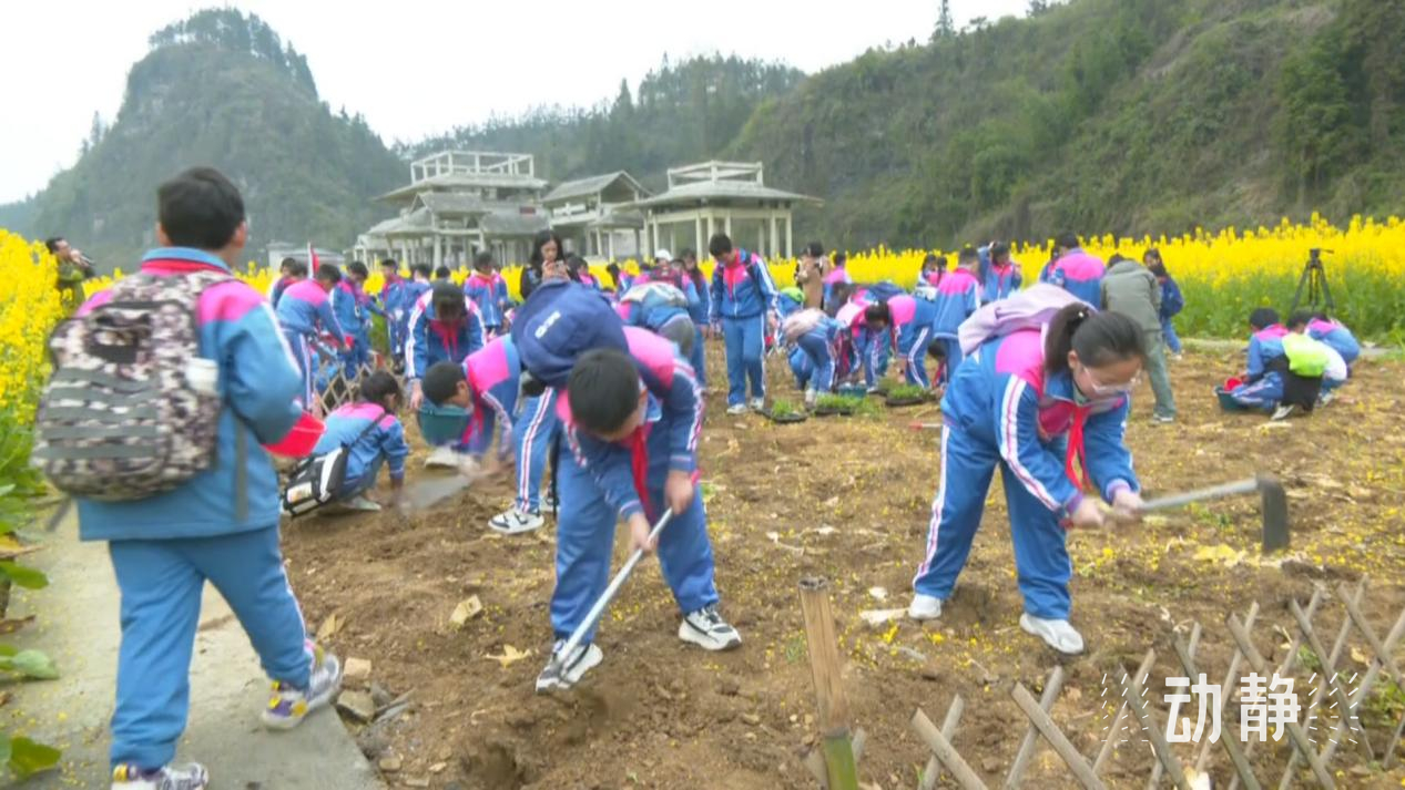 铜仁市第三十二小学组织数百名师生来到碧江区瓦屋乡的“村校共育”研学教育基地,翻土栽苗、洒水生火、洗锅炒菜,体验着农耕的快乐。
