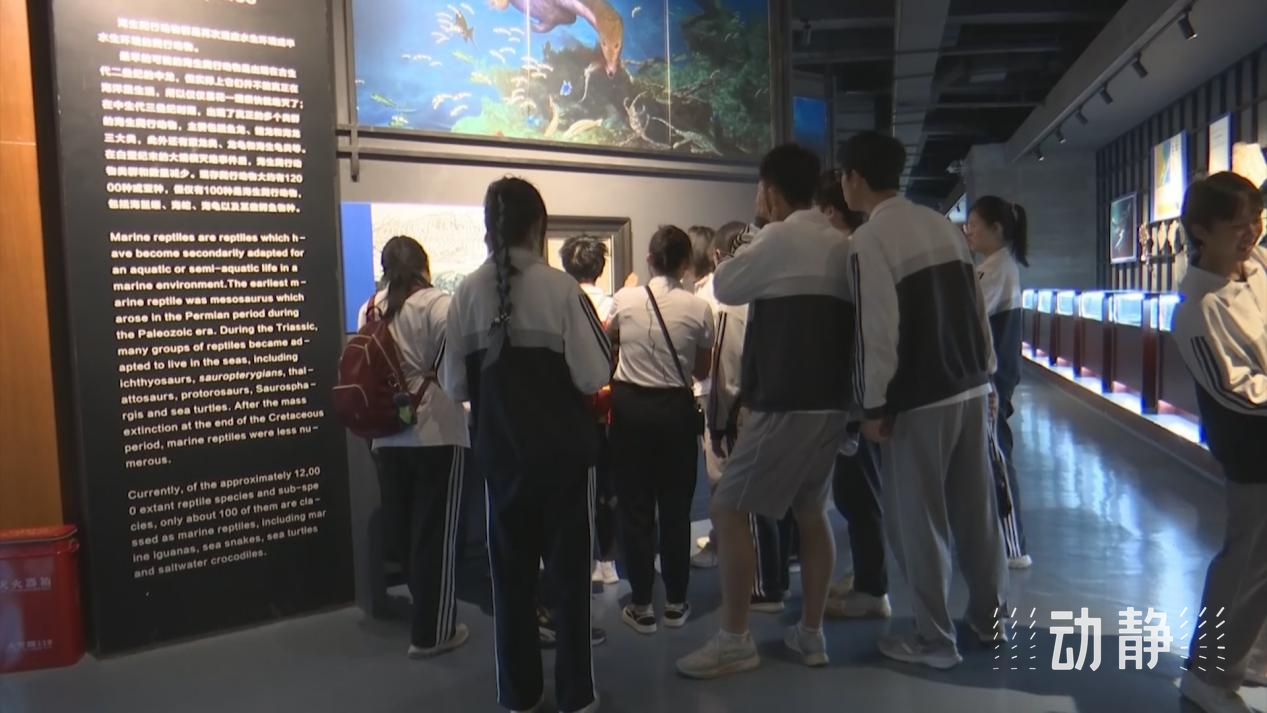 由70多名师生组成的北京市月坛中学研学团队来到了兴义地质公园博物馆,他们认真听讲解,详细了解海生动物下海的原因及演变历程。