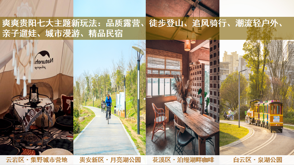贵阳周边藏着不少度假好去处,小编整理了贵阳周边七大新潮爽游玩法和线路推荐,品质露营、徒步登山、追风骑行、潮流轻户外、亲子遛娃、城市漫游、精品民宿,七大玩法包你五天玩不够。