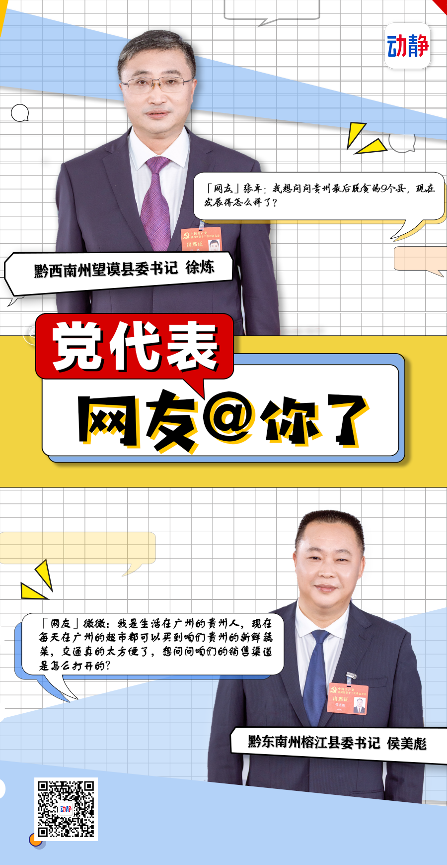 县委是我们党执政兴国的“一线指挥部”,今天做客演播室的两位党代表就是当地的“一线总指挥”,黔东南州榕江县委书记侯美彪和黔西南州望谟县委书记徐炼。一起听听,他们如何解答网友的提问。