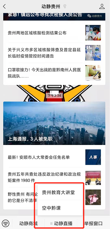 在动静贵州微信号上的服务栏点击“空中黔课”收看。