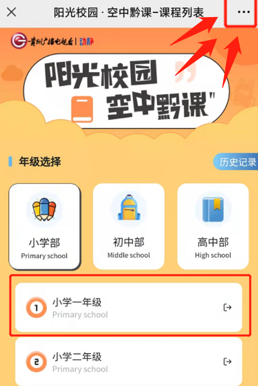 为了保证在动静贵州、贵州新闻联播微信号上能顺利观看,大家在打开“空中黔课”单期的链接后,点击右上角“…”选“在浏览器中打开”就可收看。具体操作如下: