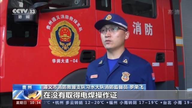 贵州遵义市消防救援支队习水大队消防监督员 罗荣飞:这起火灾的起火原因是工人吕某某在没有取得电焊操作证且未经过动火审批的情况下,擅自进行电焊作业,现场也没有采取防护措施,导致焊渣溅落引燃仓库内海绵等可燃物引发火灾。这起火灾最终由遵义市习水县公安局,依法给予吕某某行政拘留十二日的处罚。