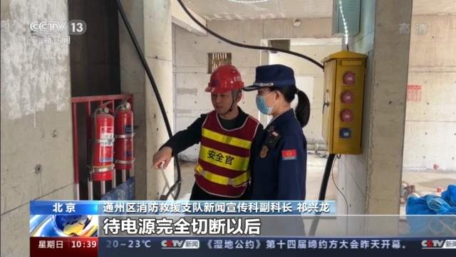 北京市通州区消防救援支队新闻宣传科副科长 祁兴龙:在电焊过程中,很有可能没有办法第一时间进行断电,那么如果你使用泼水的方法,就可能会造成人员触电的问题。所以有干粉灭火器的话,优先使用干粉灭火器进行扑救,待电源完全切断以后,可以用大量的水进行扑救,当然如果周边有沙土或者水泥,用这些东西进行覆盖也是可以的。