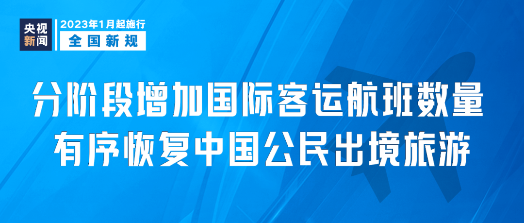 国务院联防联控机制发布中外人员往来暂行措施,2023年1月8日起,来华人员在行前48小时进行核酸检测,结果阴性者可来华;不再对入境人员实施全员核酸检测;分阶段增加国际客运航班数量,有序恢复中国公民出境旅游。