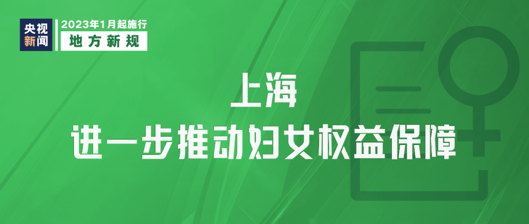《上海市妇女权益保障条例》2023年1月1日起施行,明确禁止就业歧视,将性别歧视行为纳入劳动保障监察范围;明确对家庭暴力行为处置,把预防和制止家庭暴力工作纳入各地区、各单位平安建设工作范围。