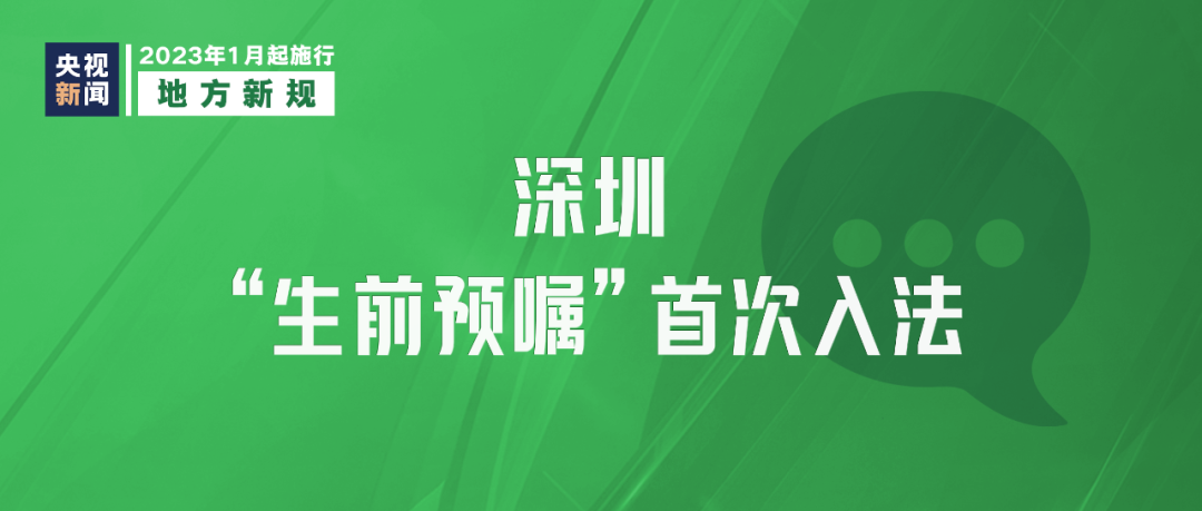 新修订的《深圳经济特区医疗条例》在全国首次将患者“临终决定权”——“生前预嘱”写入地方性法规,于2023年1月1日施行,其中明确,医疗机构在患者不可治愈的伤病末期或者临终时实施医疗措施,应当尊重患者的“生前预嘱”。
