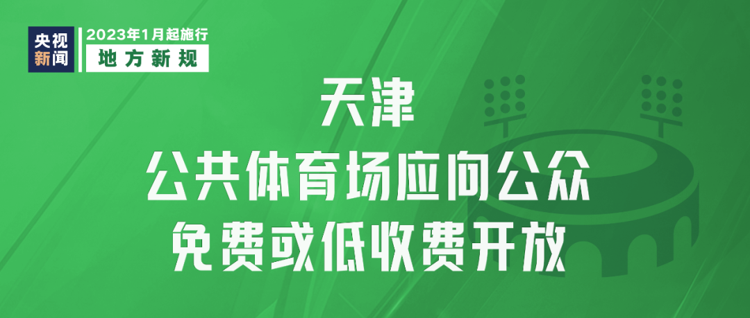 修订后的《天津市全民健身条例》2023年1月1日起施行,明确天津市公共体育场地设施应当根据其功能、特点,按照国家和天津市有关规定向公众免费或者低收费开放。