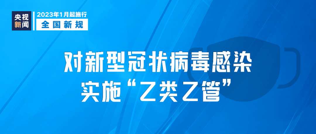 2023年1月8日起,对新型冠状病毒感染实施“乙类乙管”。依据传染病防治法,对新冠病毒感染者不再实行隔离措施,不再判定密切接触者;不再划定高低风险区。依据国境卫生检疫法,不再对入境人员和货物等采取检疫传染病管理措施。