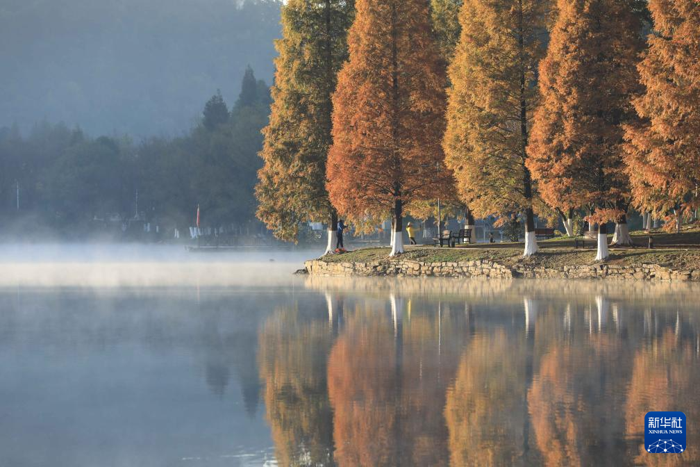 11月17日在贵州省贵阳市观山湖区观山湖公园拍摄的初冬景色(无人机照片)。新华社发(李鹤摄)