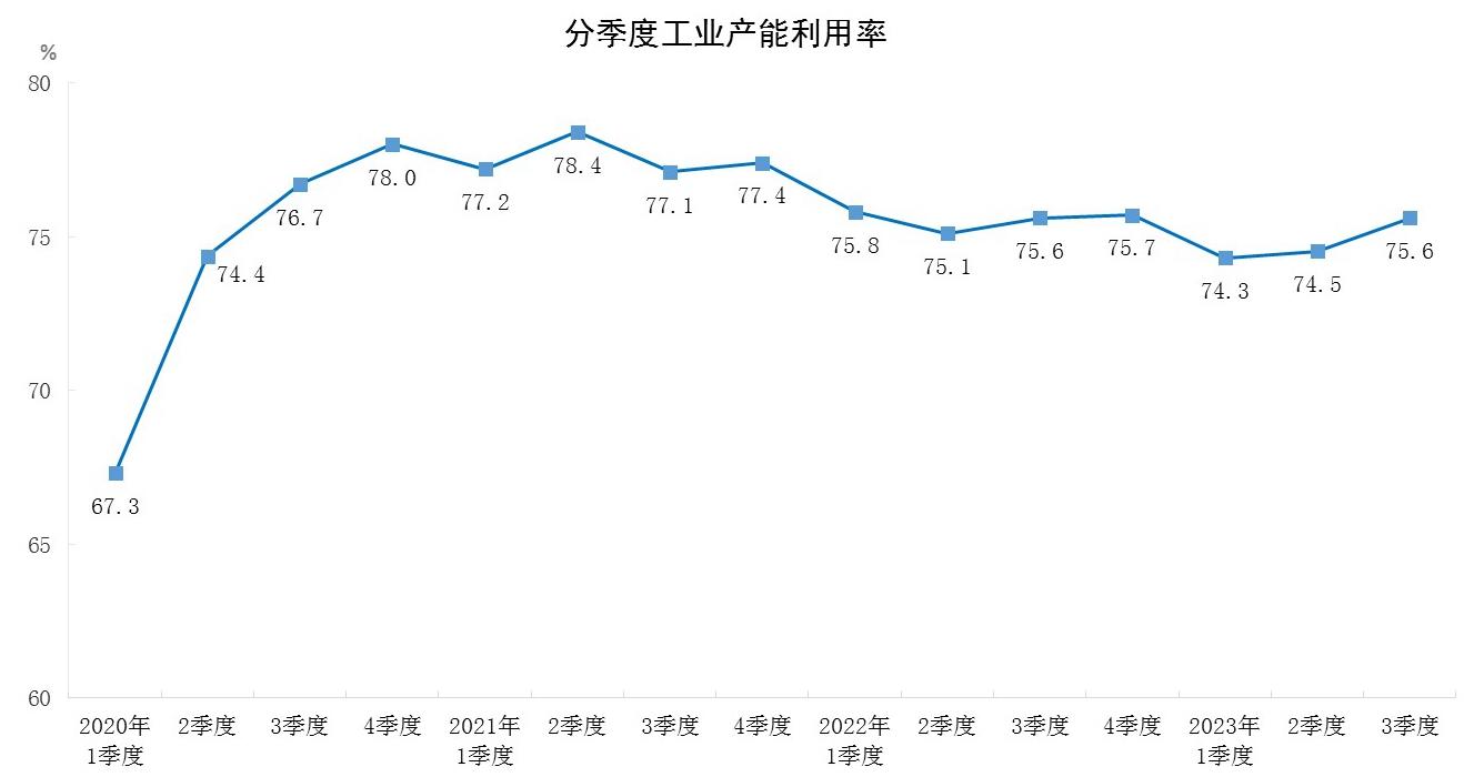 据国家统计局消息,三季度,全国工业产能利用率为75.6%,与上年同期持平,比二季度上升1.1个百分点。