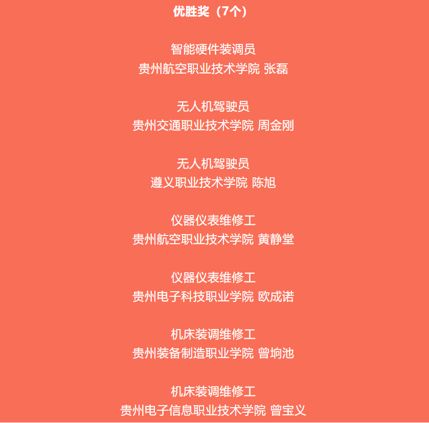 第十八届“振兴杯”全国青年职业技能大赛学生组专项赛全国决赛贵州省获奖名单