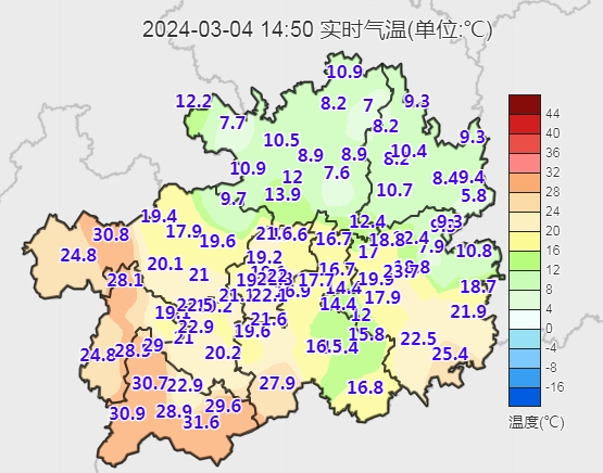 如兴义今天14时50分高达30.9℃。