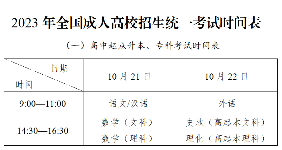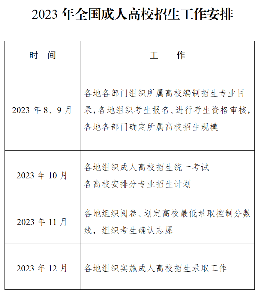 近日,教育部发布《关于做好2023年全国成人高校招生工作的通知》,明确2023年全国成人高校招生统一考试于10月21日至22日举行。具体考试时间是什么时候?如何安排?一起来看——