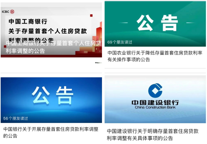 工、农、中、建四大国有商业银行9月7日分别发布公告,明确存量首套住房贷款利率调整有关事项,对调整范围、调整后的利率水平、调整方式等进行解答,及时回应客户关切。