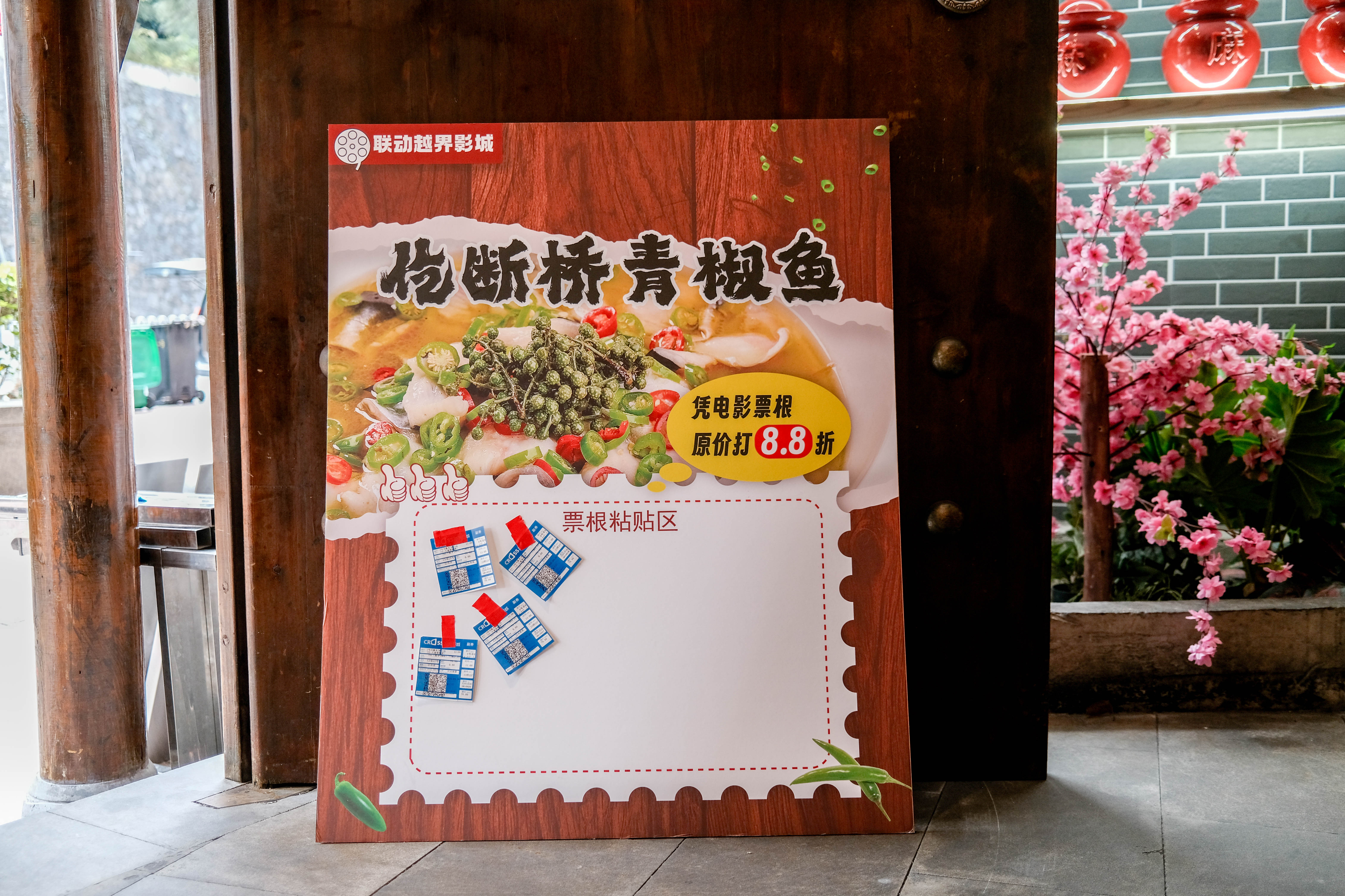 “和影院合作的目的主要还是增加店面的流量,也相当于是推广我们当地的特色。”佬断桥青椒鱼店长蒋波告诉记者,晚上有很多顾客拿着票根就到店里来,全场菜品可以打8.8折。今年国庆期间每天的营业额相比平时上涨了30%到40%。
