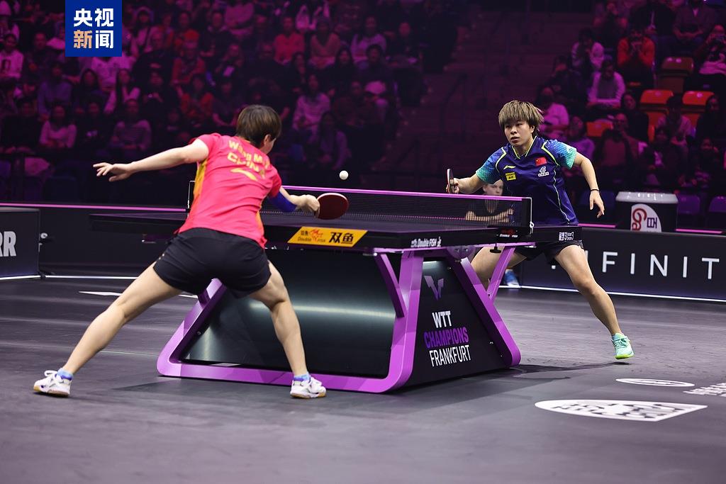 今晚,WTT法兰克福冠军赛女单决赛,王曼昱4-2战胜队友王艺迪,获得冠军。六局比分为:11-7,10-12,11-3,7-11,11-8,11-8。国乒包揽冠亚军,恭喜!