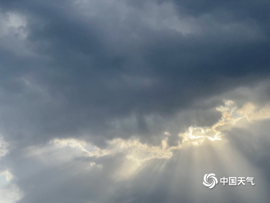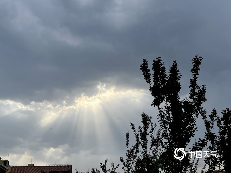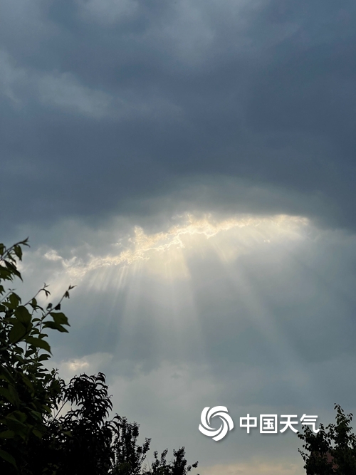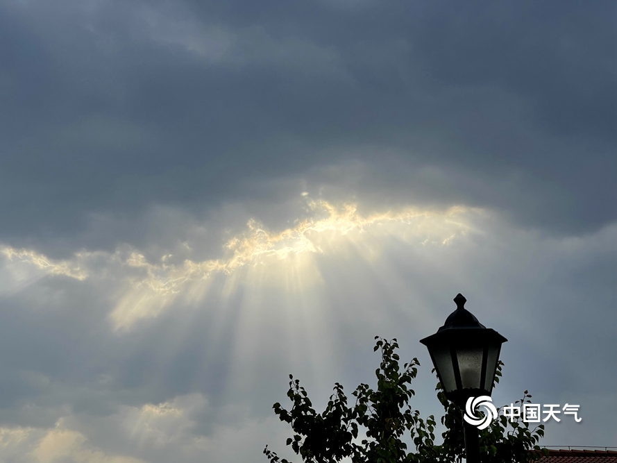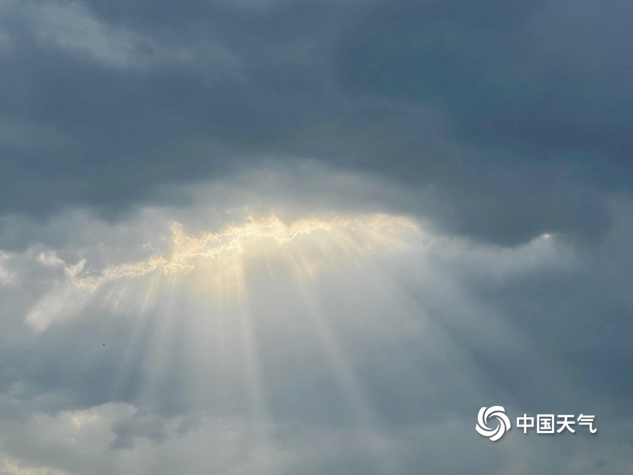 中国天气网讯 今天(5月29日)早上,北京天空现“云隙光”景象,阳光透过云层从高空倾泻而下,仿佛流光瀑布照耀着大地。图:中国天气网王晓