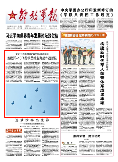 鲜红的八一军旗下,青年飞行学员精神抖擞、意气风发。“到一线作战部队去,到党和人民最需要的地方去建功立业!”结业典礼上,领誓人、“00后”飞行学员齐航的誓言铿锵有力、振奋人心。按以往空军飞行人才培养模式,一名学员需经历4至6年的飞行训练,才能获得三代机战斗员资格。2020年,空军在石家庄飞行学院开展“三代机进院校”教学新模式试点,歼-10战机首次列装该院,学员仅需3年飞行训练便可获得三代机战斗员资格。