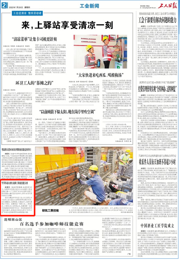 今天(7月28日),《工人日报》刊发新闻《毕节举办白酒行业职工职业技能大赛》。