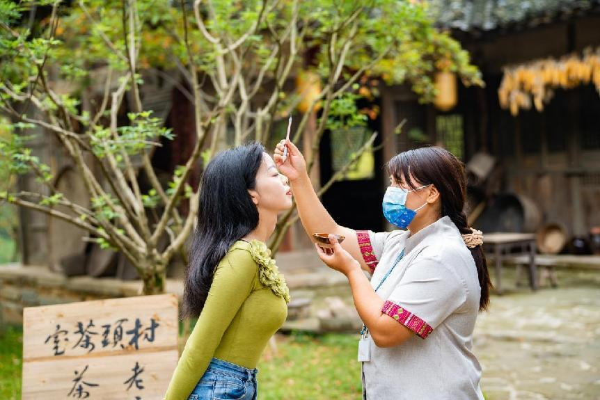 贵州遵义乌江寨景区俱乐部经理许素云表示,“在景区的不同场地,其实我们也有很多的传统习俗一些活动在这里面,像雄黄点额、彩绳祈福主要是为了让游客来到乌江寨能够更深入地,更沉浸式地能够体验或感受到我们传统中国文化的一些魅力。”