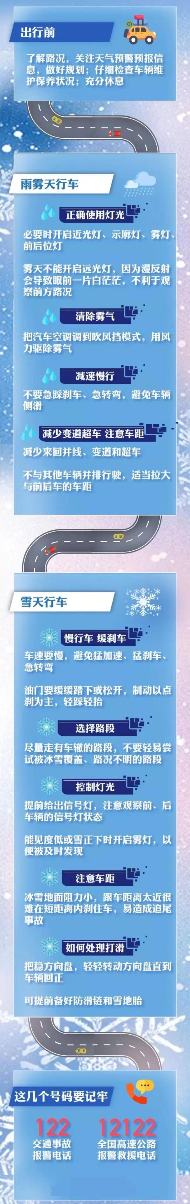 2月8日,我国中东部今年以来最强雨雪过程进入鼎盛。雪天路面湿滑,司机朋友们在驾车时请降低车速,时刻保持安全距离。关于雨雪天气行车还有哪些注意事项,快来学习↓
