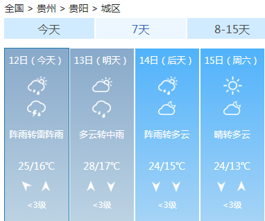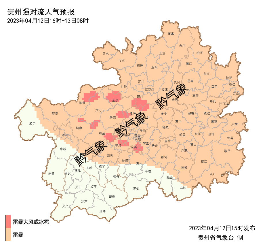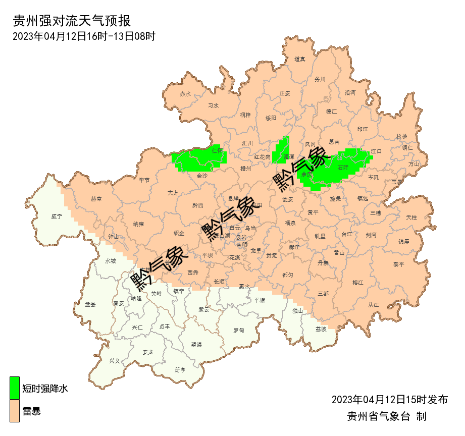 今天傍晚到夜间,省的西部边缘多云,其余地区阴天间多云有阵雨或雷雨,其中东北部地区局地中到大雨,毕节市中东部、贵阳市、遵义市南部及黔南州北部局部有冰雹、雷暴大风及短时强降水等强对流天气;明天白天,中西部地区晴到多云,其余地区阴天间多云有分散阵雨或雷雨。