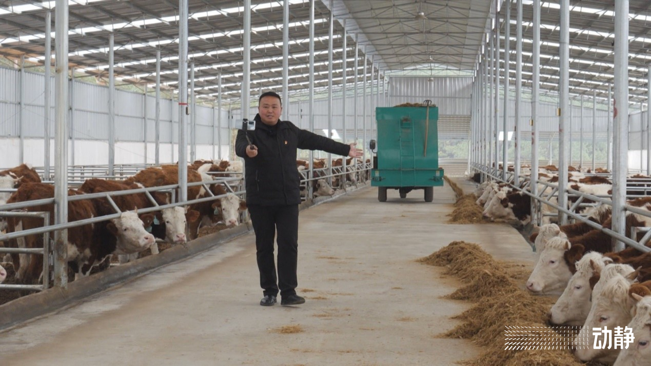 郑培坤:现在我带大家看的就是我们去年建成的智慧牛场,整个牛场可以存栏500多头,现在有母牛200多头,全部使用机械化的饲喂方式,最多两个人就能够饲养这么多牛,完全实现了牛场的智能化运营。
