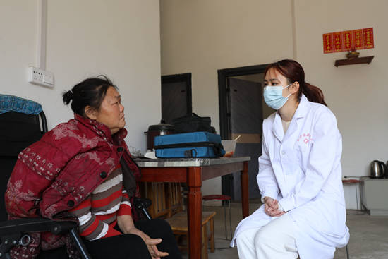 “今天我们要去的是水山村脱贫户黄秀梅家,老人年纪比较大,血压一直比较高。还患有糖尿病、脑梗死后遗症等,我们需要分几次进行测量,才能进一步完善她的健康档案,给出更有效的治疗方案……”在黄秀梅家中,韦冬梅利索地给她量血压,一遍又一遍地向她解释医保政策,劝导她及时到医院就医,控制病情。