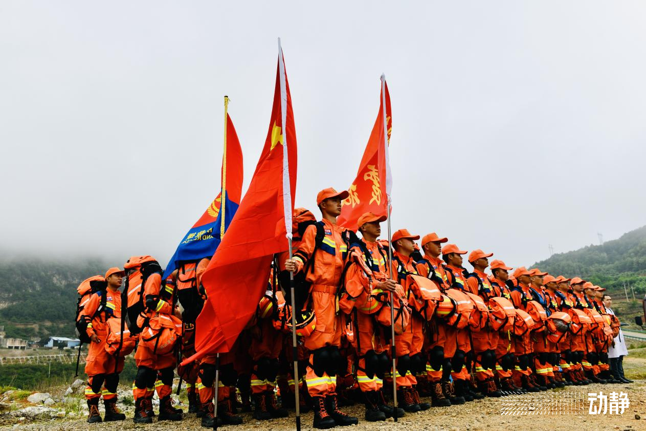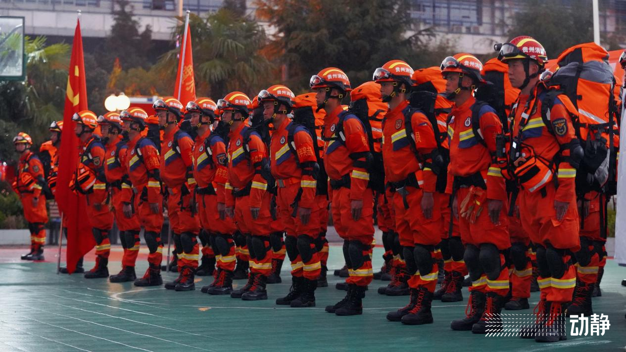 派1支轻型地震救援队,共60名消防员,12台消防车,2条搜救犬,携带山岳、水域、破拆等3500余件(套)各类器材装备赶赴“震中”救援。
