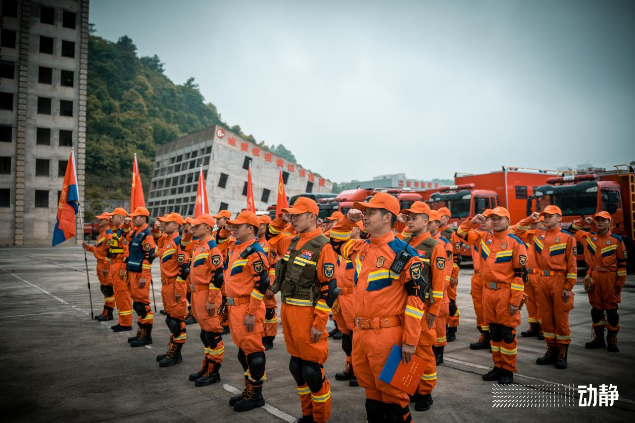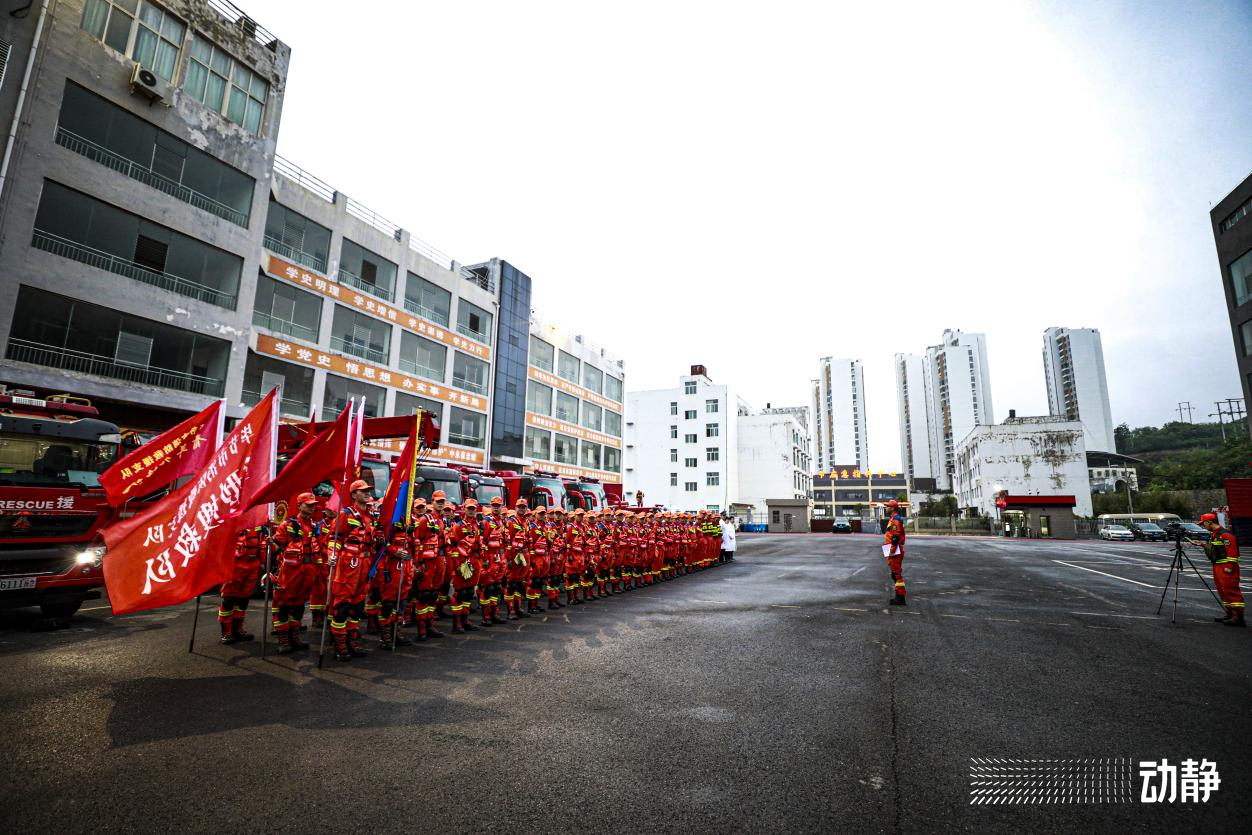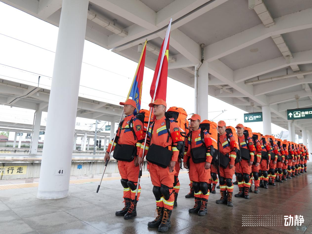 集结轻型地震搜救队75名指战员,13辆消防救援车、1600余件(套)救援装备、24件套通信装备和2条搜救犬,通过公路、高铁运输方式对人员和装备进行输送。