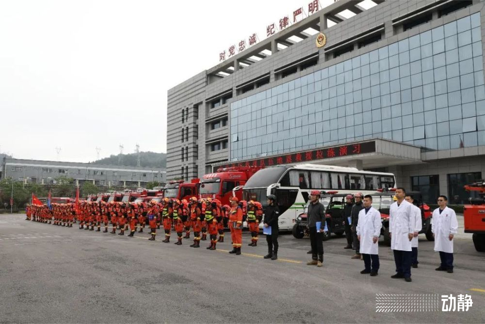 迅速集结90名指战员、21 辆作战车辆以及2条搜救犬,携行各类型救援装备1635件(套)向“震中”开拔。