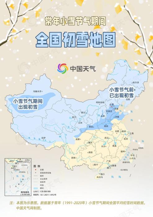 今天(11月22日),我国各地进入小雪节气,这是冬季的第二个节气,意味着天气越来越冷、降雪日渐展开。通常此时,冬季版图从黄淮一带向南继续扩张,全国平均气温也将跌破冰点,北方多地陆续迎来初雪。中国天气网特别推出小雪期间初雪地图和大城市“遇雪”概率排行榜,看看哪些城市“冬意”最浓。