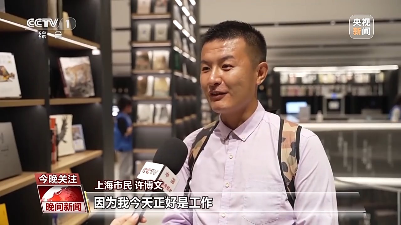 上海市民 许博文:因为我今天正好是工作加班到了9点多,这个时候又觉得一天很疲惫了,我就很想来书院放松一下,那种安静的磁场散发出来,会让人觉得好像我们从书中可以找到更多的力量来推进我们白天的生活。