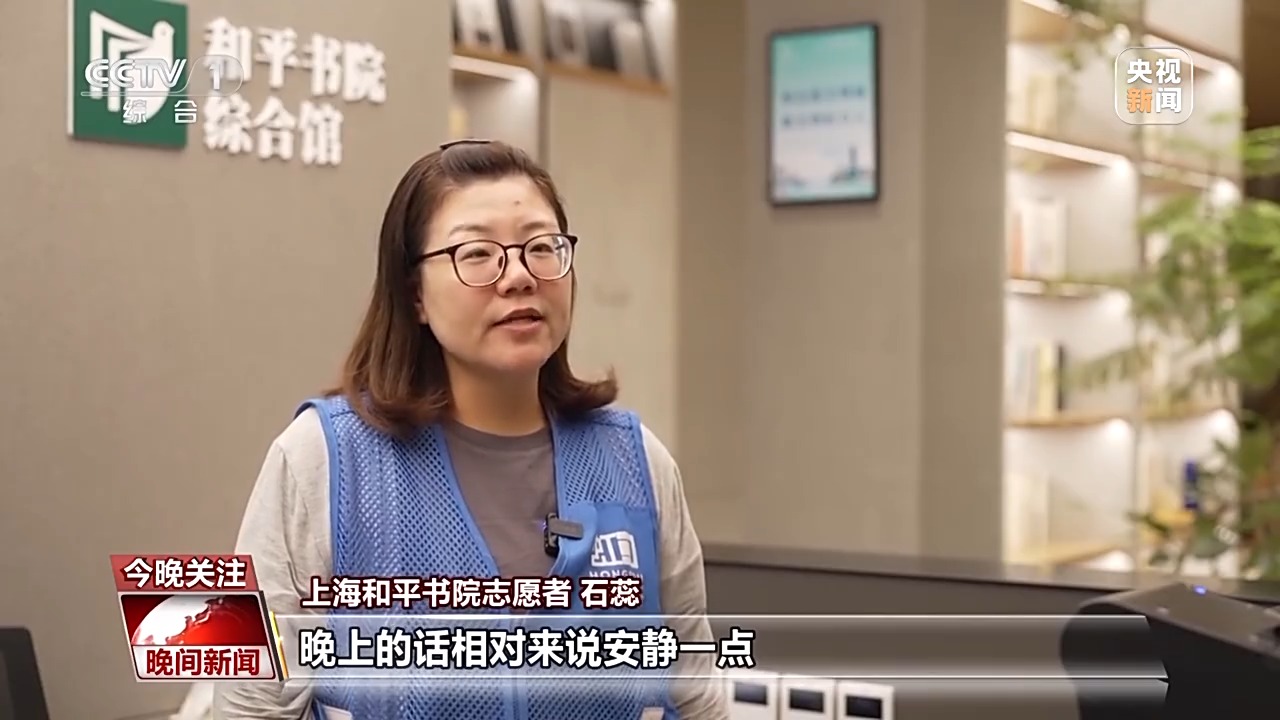 上海和平书院志愿者 石蕊:晚上的话相对来说安静一点,最多的年轻人,还有老年人比较多。