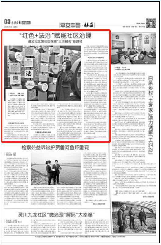 遵义市红花岗区司法局副局长王燕告诉记者:“通过‘一中心一张网十联户’机制,把综治中心设置在这里,居委会干部、乡村法律明白人、法治宣传员都进入网格,结合安全排查、民意收集、政策普及、公益帮扶等基层业务开展法律咨询、纠纷排查、矛盾调解等依法治理工作,使该社区成为远近闻名的无讼社区。”