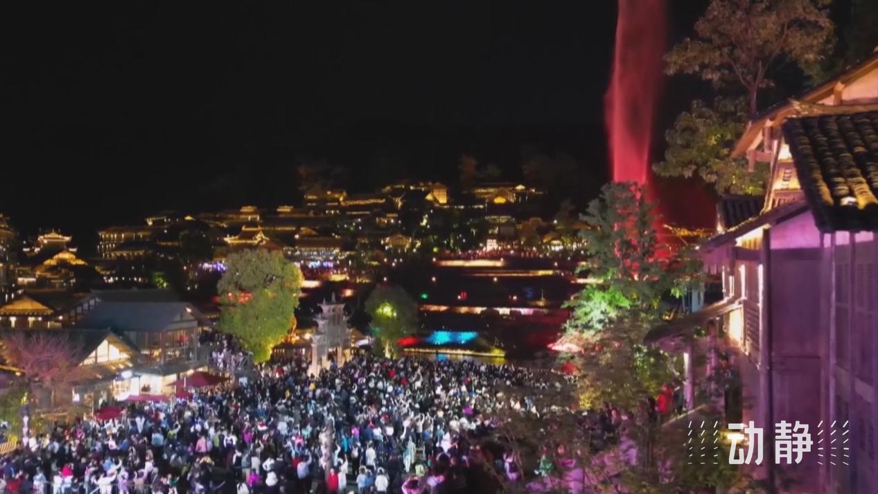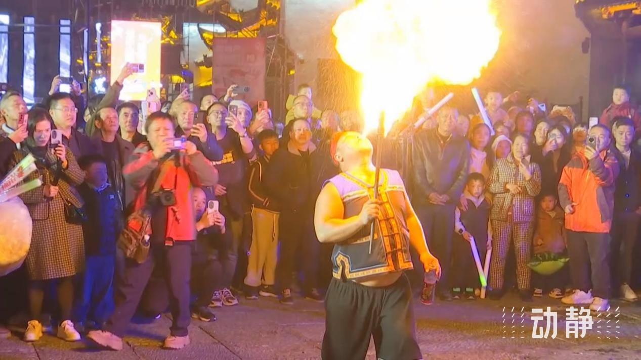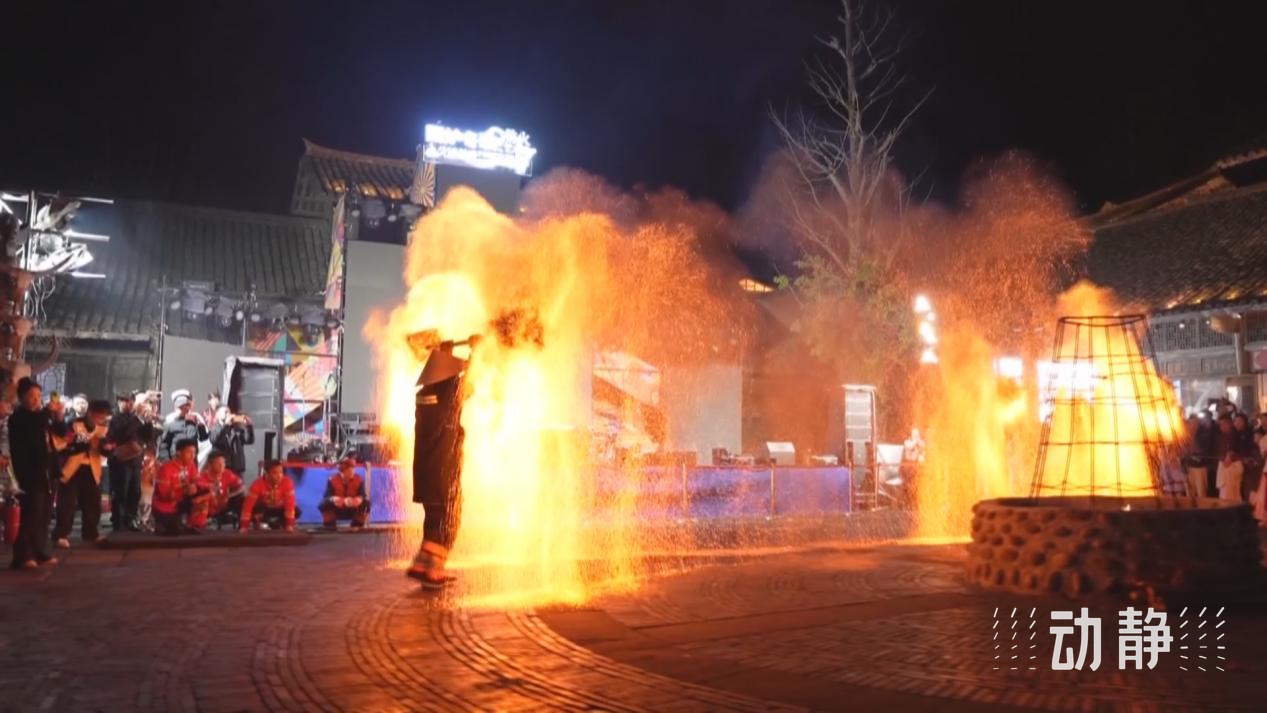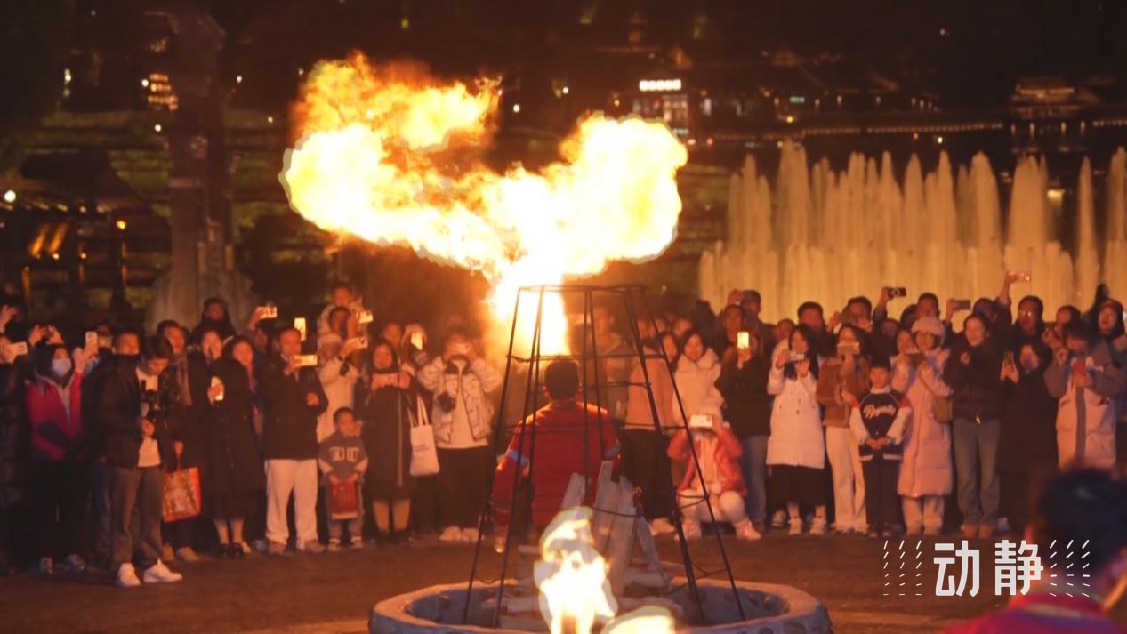 在遵义市播州区乌江寨国际旅游度假区,除了鱼灯巡游、音乐水舞秀、无人机表演等节目,景区还策划了火壶秀、非遗打铁花、篝火狂欢舞会等演出,让游客领略非物质文化遗产魅力的同时,还能感受到冬日里的温暖。