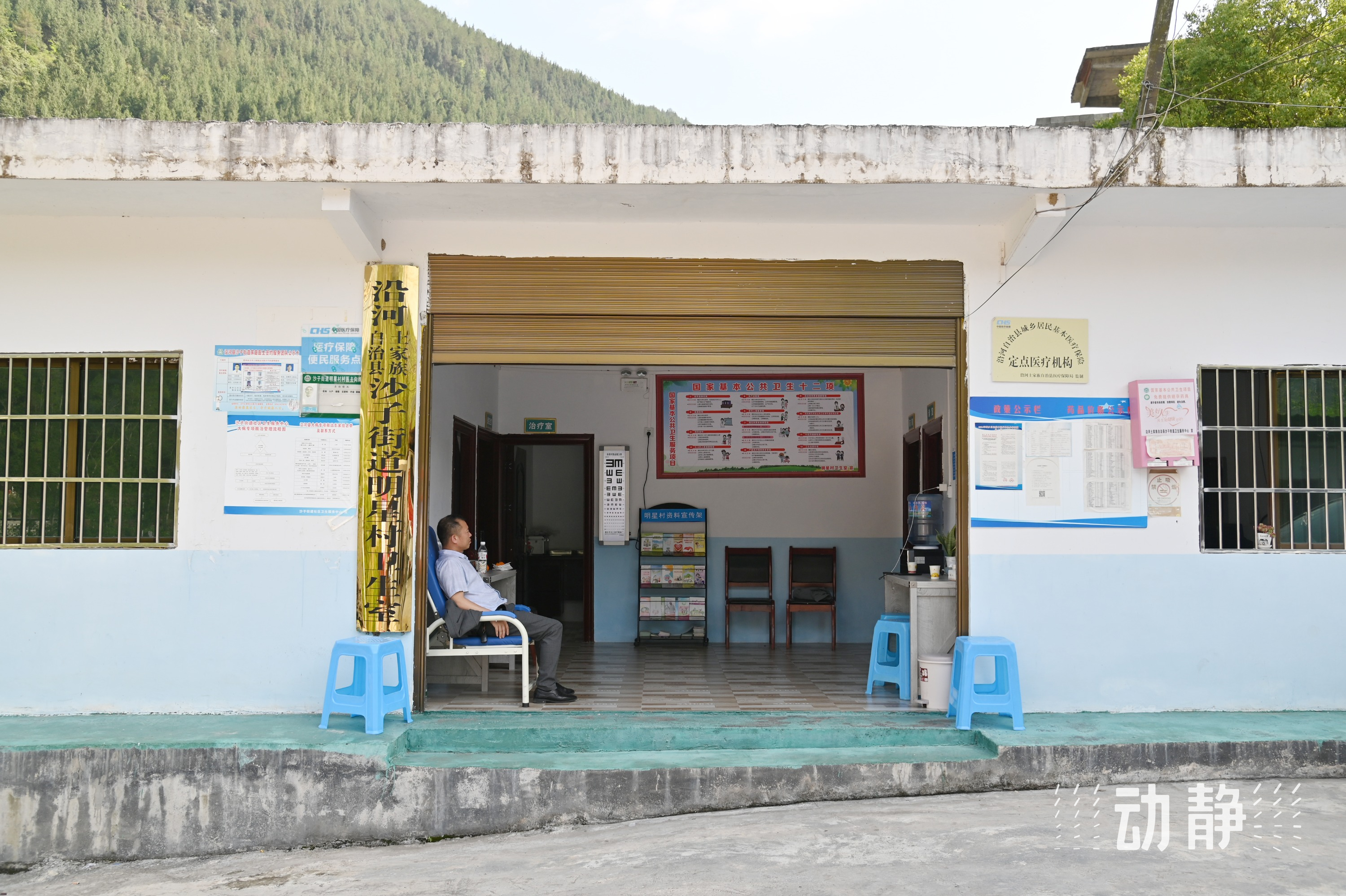 驱车从沿河县城出发,10余分钟的路程,沙子街道南庄村村委会大院出现在眼前。走进这栋三层小楼的入口处,一眼便能看到南庄村卫生室。诊断室、治疗室、公共卫生室、科普宣传室、药房——“四室一房”功能齐全,墙上挂着工作制度等文件和公示信息,室内还有各种疾病预防宣传手册。药房门口的村医去向牌显示——村医王晓霞在岗。