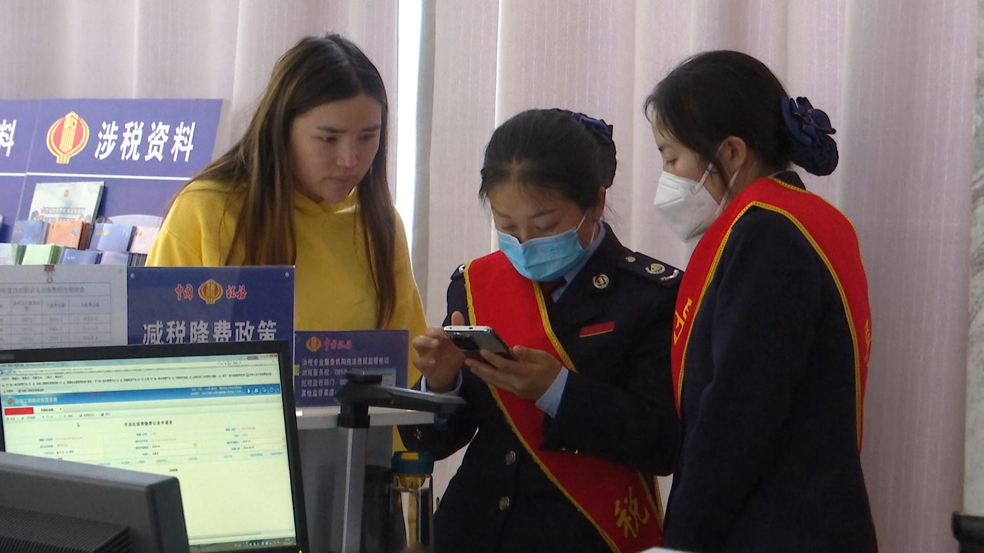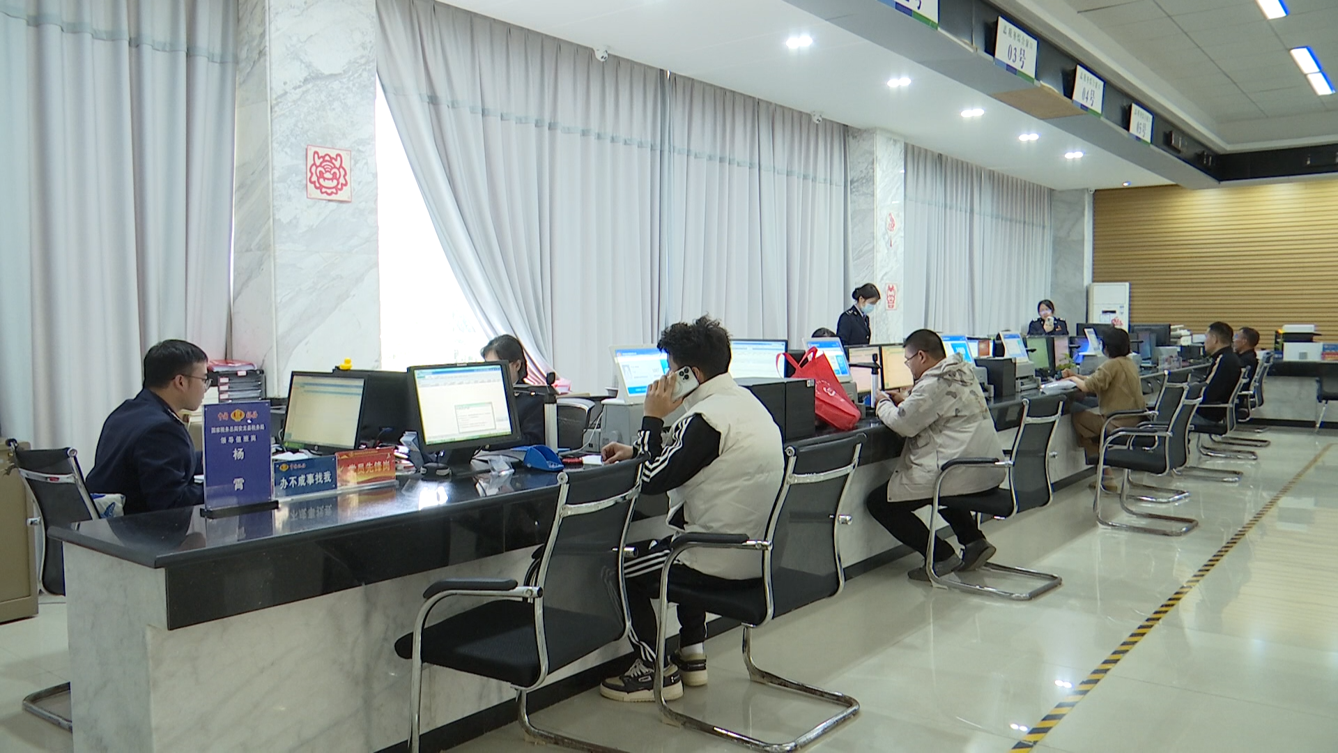 在安龙县政务服务中心法人综合服务二区,大厅宽敞明亮,各办事窗口一字排开,前来办事的群众来往穿梭,忙而有序。安龙县税务局增纳互动坐席人员正通过音视频互动、远程协助的方式,耐心地给办税人远程指导涉税办理问题。安龙县税务局纳税服务股股长苏漫说道:“在办件过程当中,如果纳税人遇到任何问题,我们增纳互动坐席人员将通过文字、图片、视频、同屏共享等方式,帮助纳税人、缴费人在线远程解决问题。”