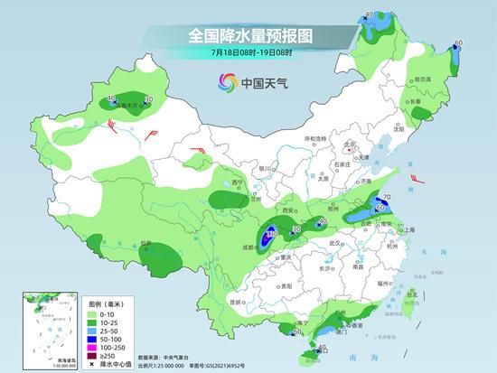 今起三天,四川盆地至黄淮一带强降雨持续,华南、东北等地部分地区也将出现降雨。中央气象台预计,17日至20日,四川盆地西部和北部、甘肃东南部、陕西南部、河南大部、山东南部、苏皖北部等地有大到暴雨,其中,陕西西南部、河南中东部、山东南部、苏皖北部等地的部分地区有大暴雨,局地特大暴雨,并伴有雷暴大风和短时强降水等强对流天气。