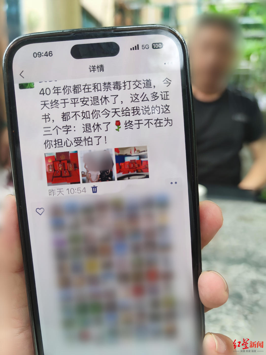 40年你都在和禁毒打交道,今天终于平安退休了……终于不在(再)为你担心受怕了!”