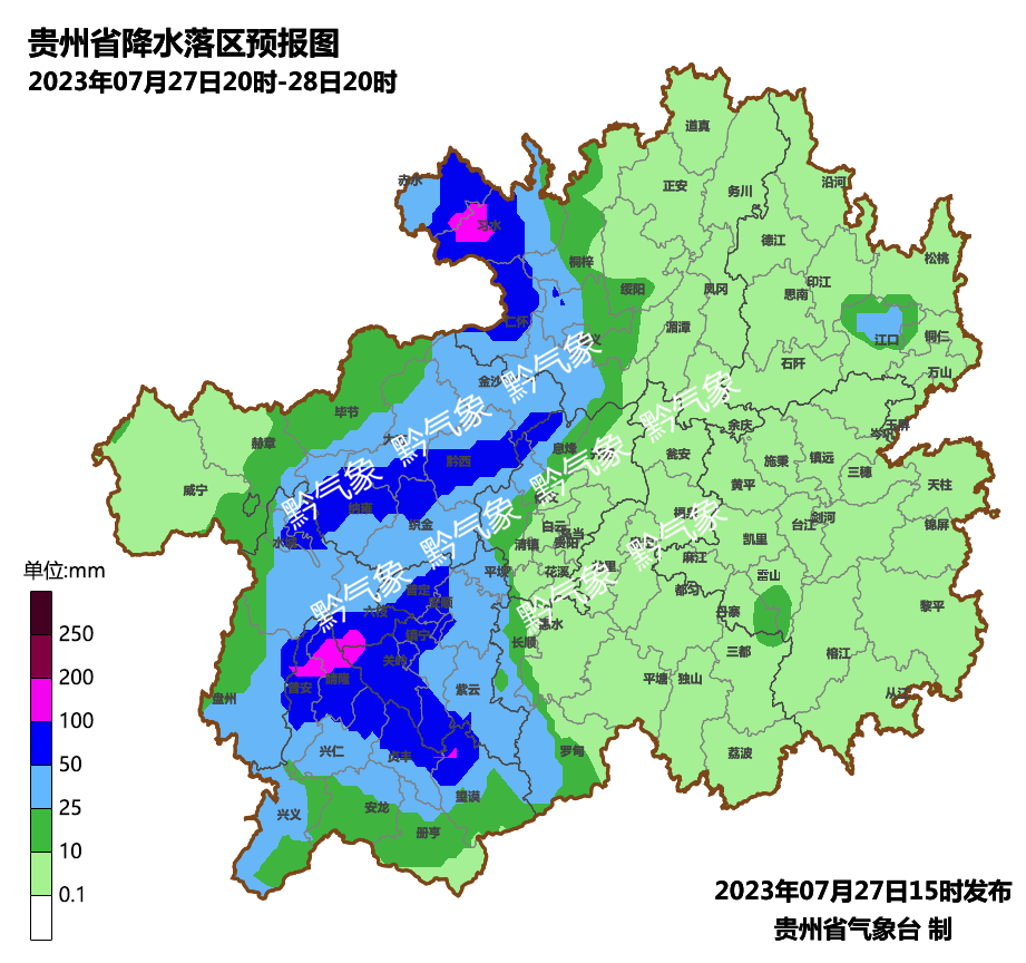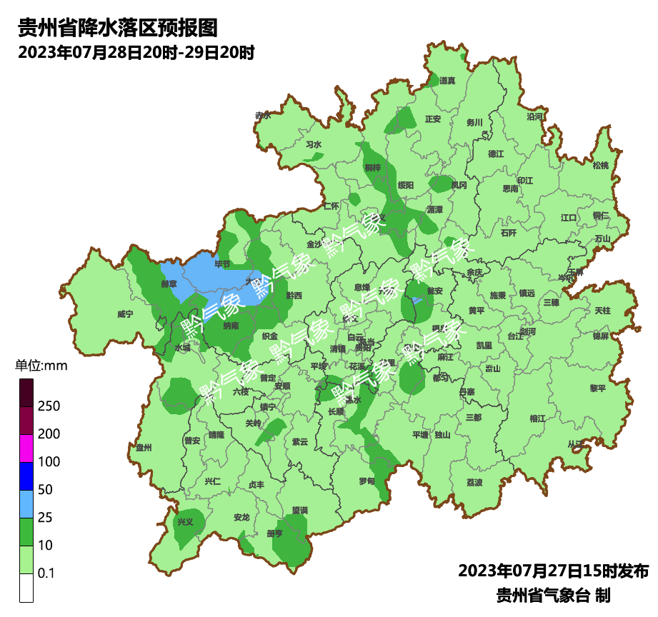 今天傍晚到明天白天,省的西部地区阴天间多云有阵雨或雷雨,雨量中到大雨,毕节市中东部、遵义市西部、六盘水市、安顺市西部、黔西南州、贵阳市西部局地有暴雨,部分乡镇有大暴雨,其余地区阴天间多云有分散阵雨或雷雨;